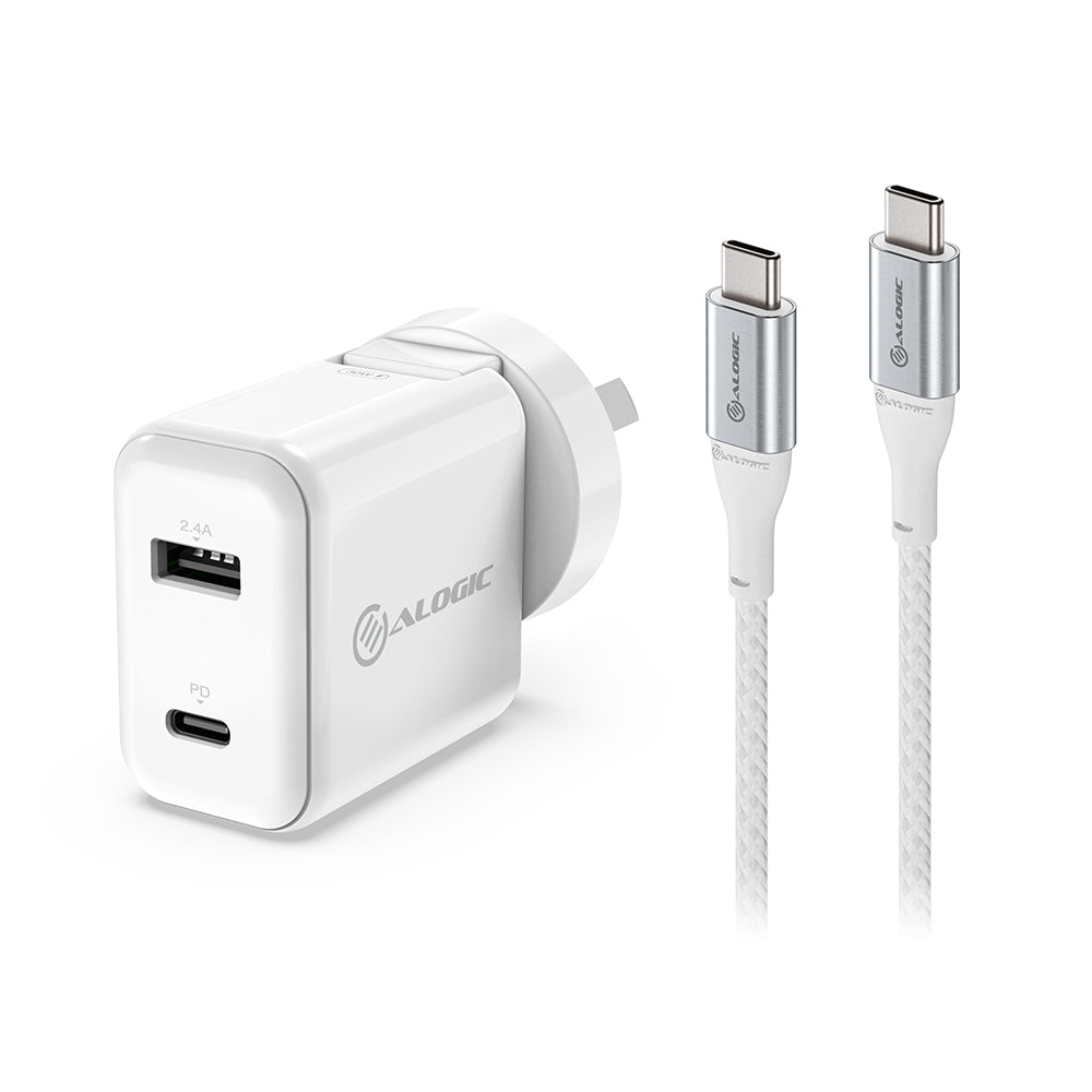 2 Port USB-C & USB-A Wall Charger 30W with Power Delivery (PD) & USB-C to USB-C cable