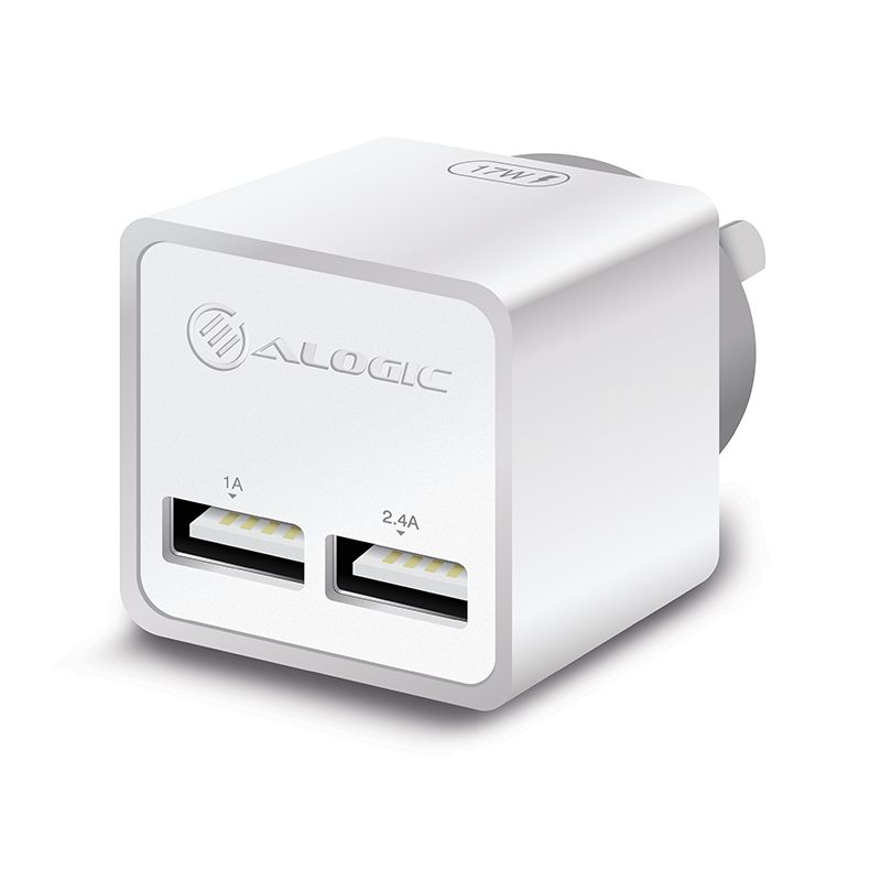 2 Port USB Mini Wall Charger - 2.4A + 1A - 17W