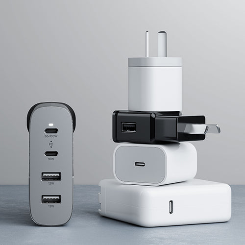 Traditional chargers are specifically suited to the device they came with. This charger is different. Using the latest USB-C Power Delivery technology it can charge most late model laptops, tablets and phones. Using USB Power Delivery technology the charger automatically selects the most appropriate power output to suit each device and charge them safely. This charger can provide up to 100W of power to high powered devices – the maximum amount supported by the USB Power Delivery standard. The charger is also equipped with USB-A ports to allow charging mobile devices with legacy USB-A charging cables.