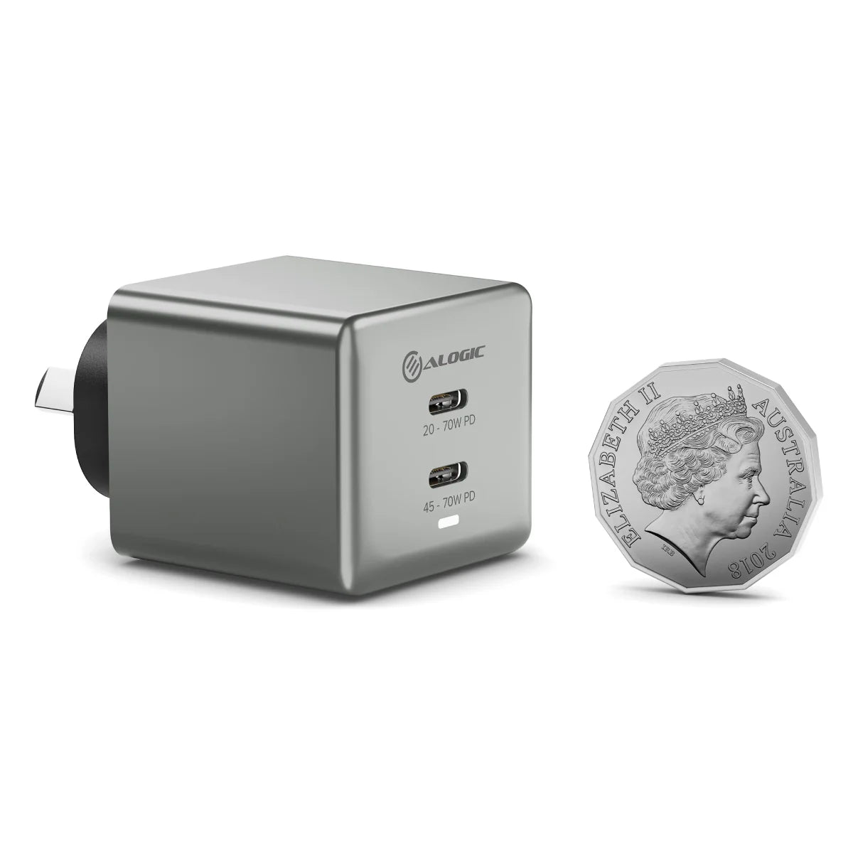 ALOGIC Rapid Power 70W Cube GaN Charger - Dual USB-C