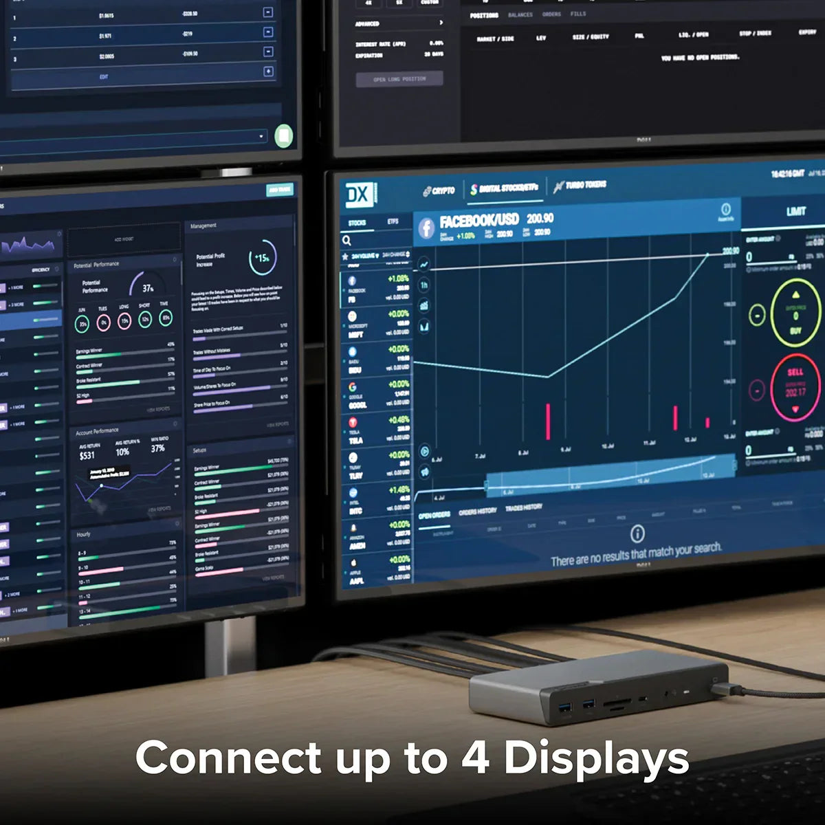 DV4 Universal Quad Display Docking Station with 100W Power Delivery - Power Adapter Included